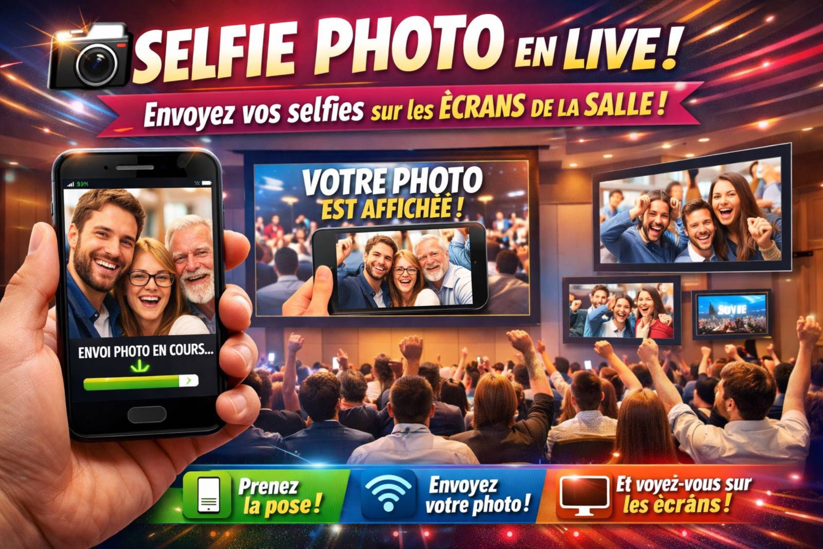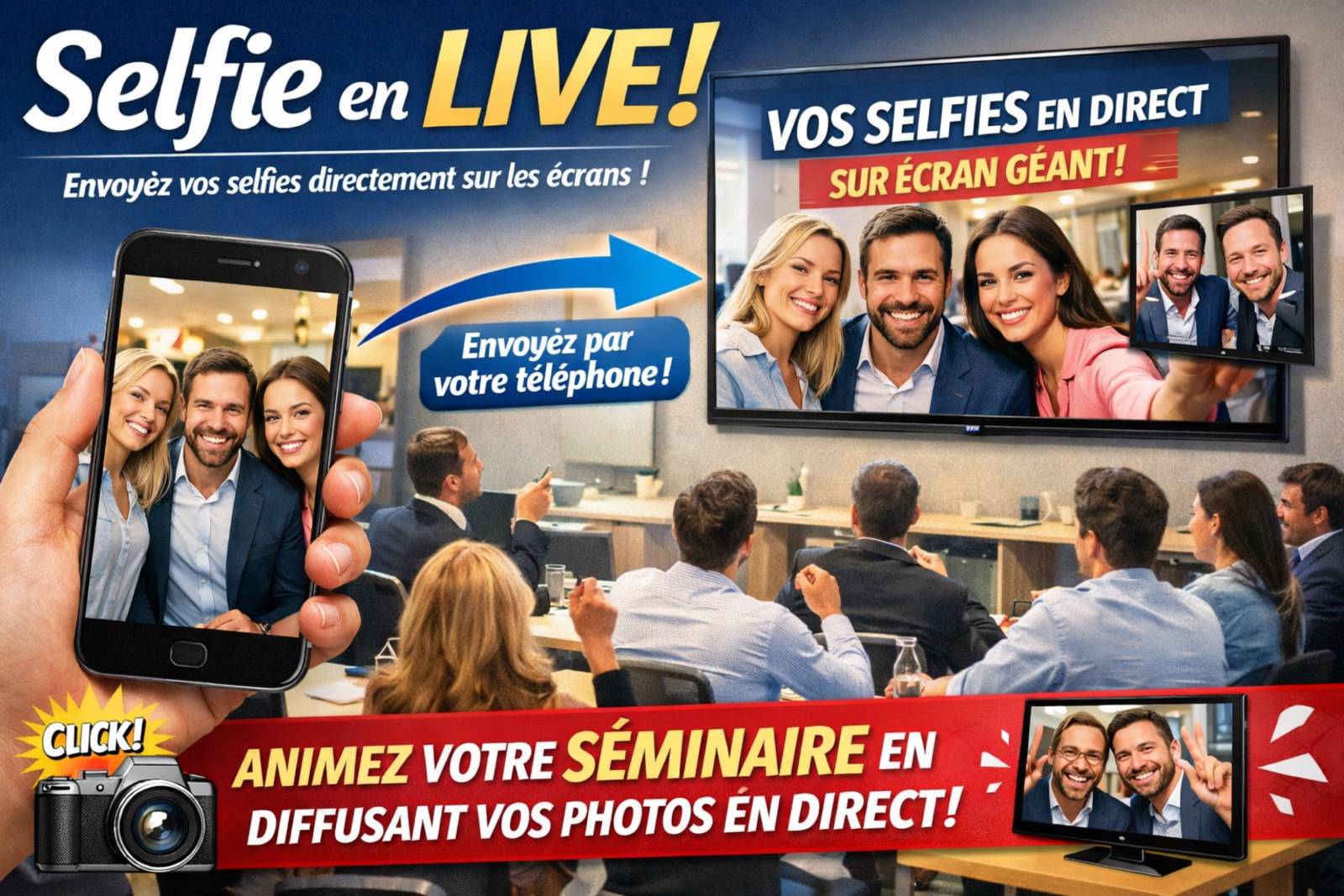 Chez LBC PRO, nous vous proposons le Photolive pour dynamiser toutes vos soirées d’entreprise. Le principe est simple : afficher en temps réel les photos prises par les participants durant la soirée.