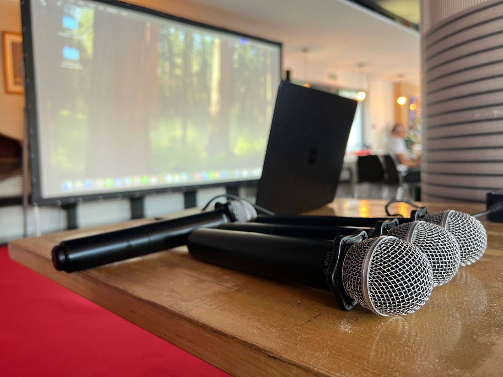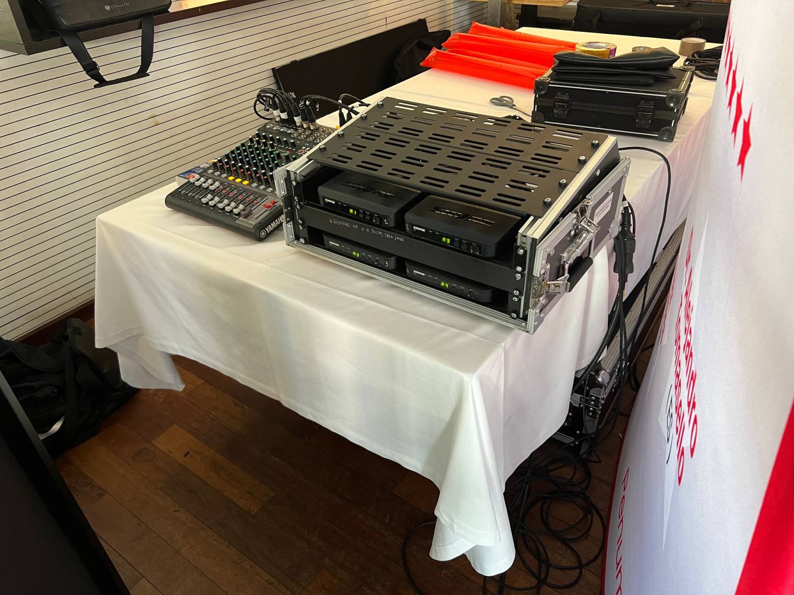 Enceintes, table de mixage, Micros hf main, Liaison vers son du pc
