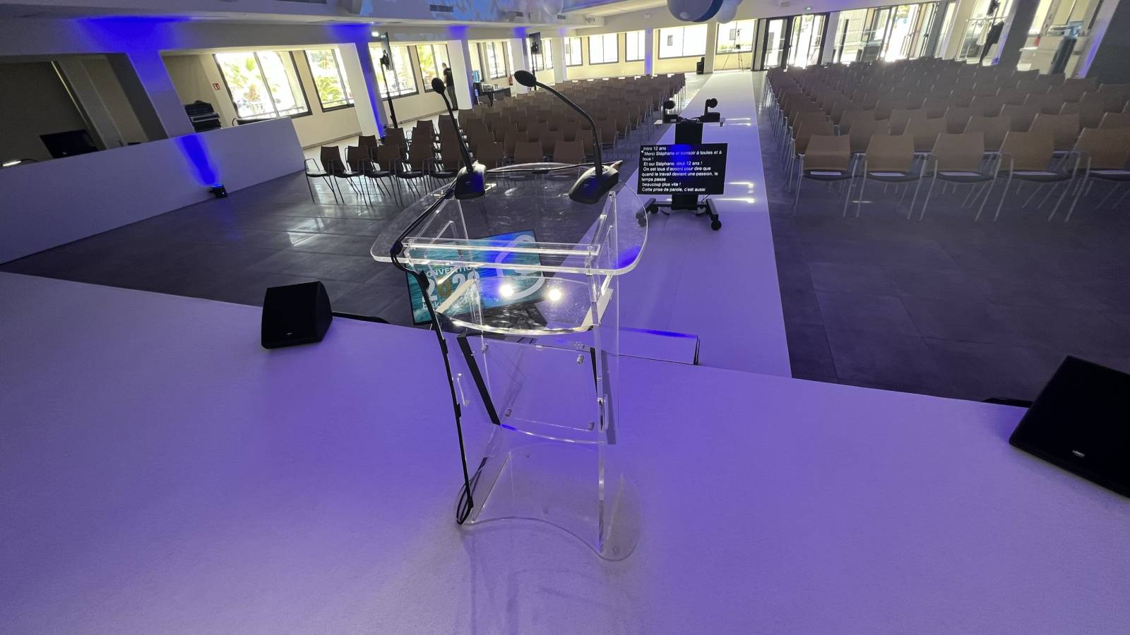 Sonorisation avec enceintes et micros , pupitre avec micros col de cygne