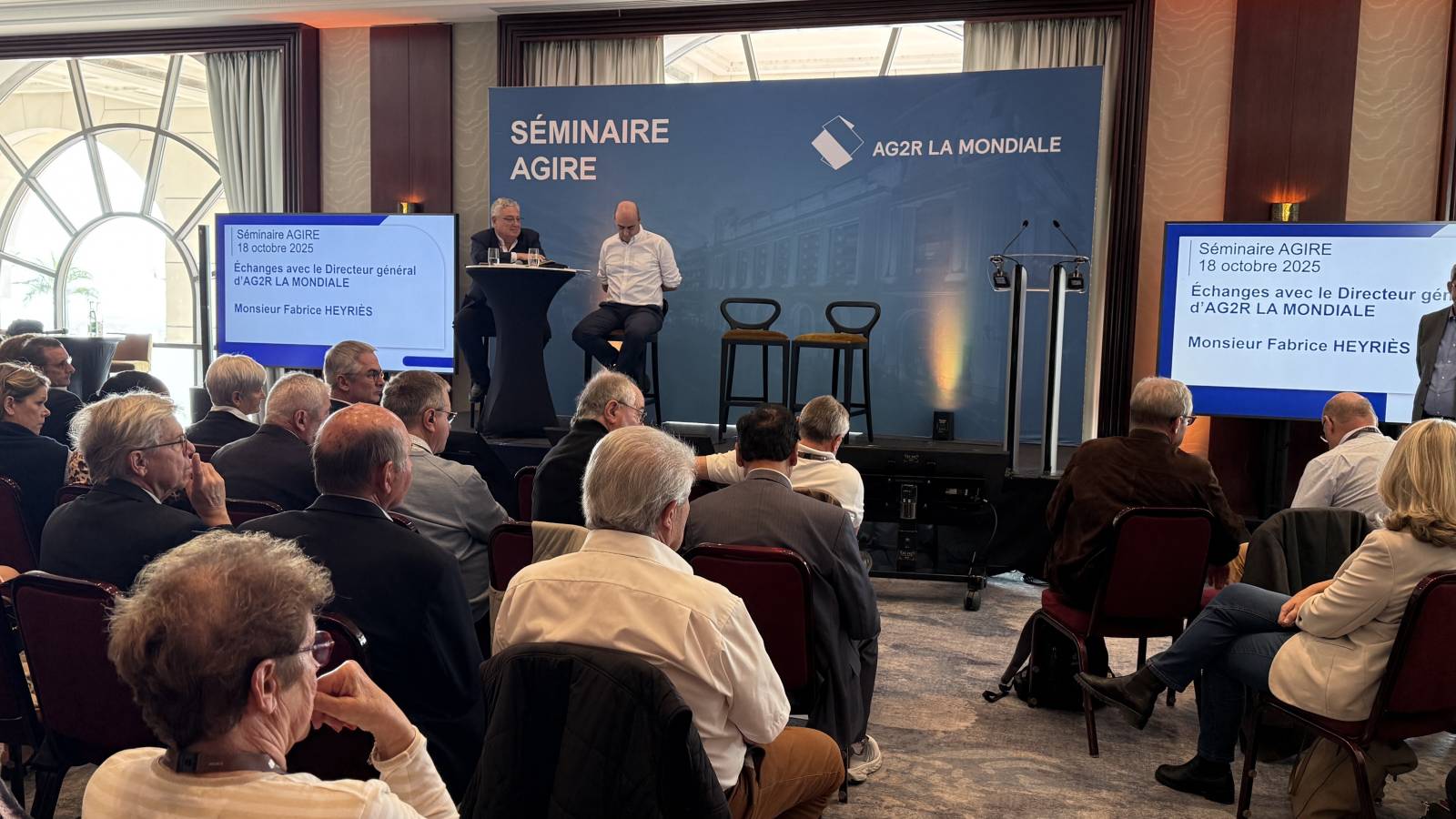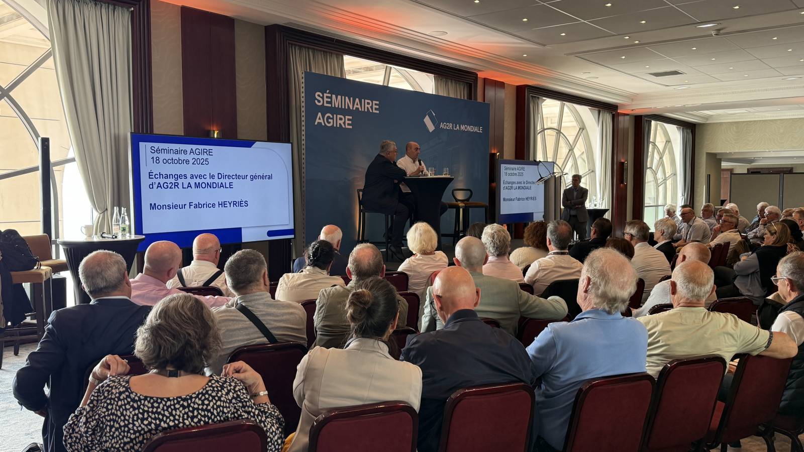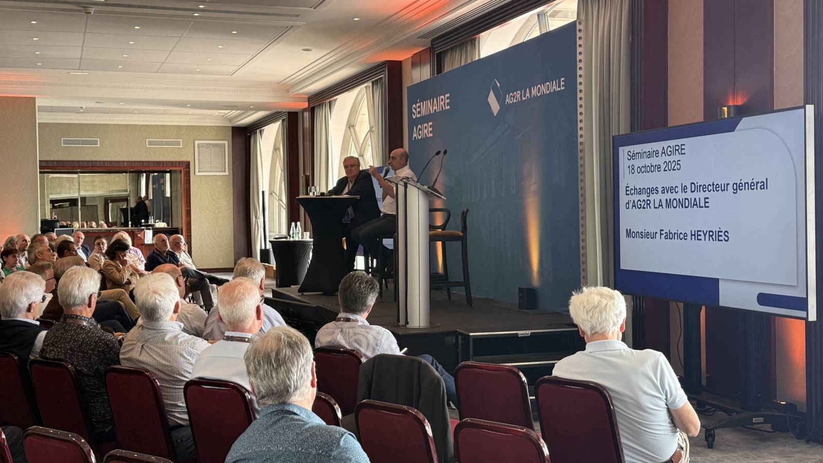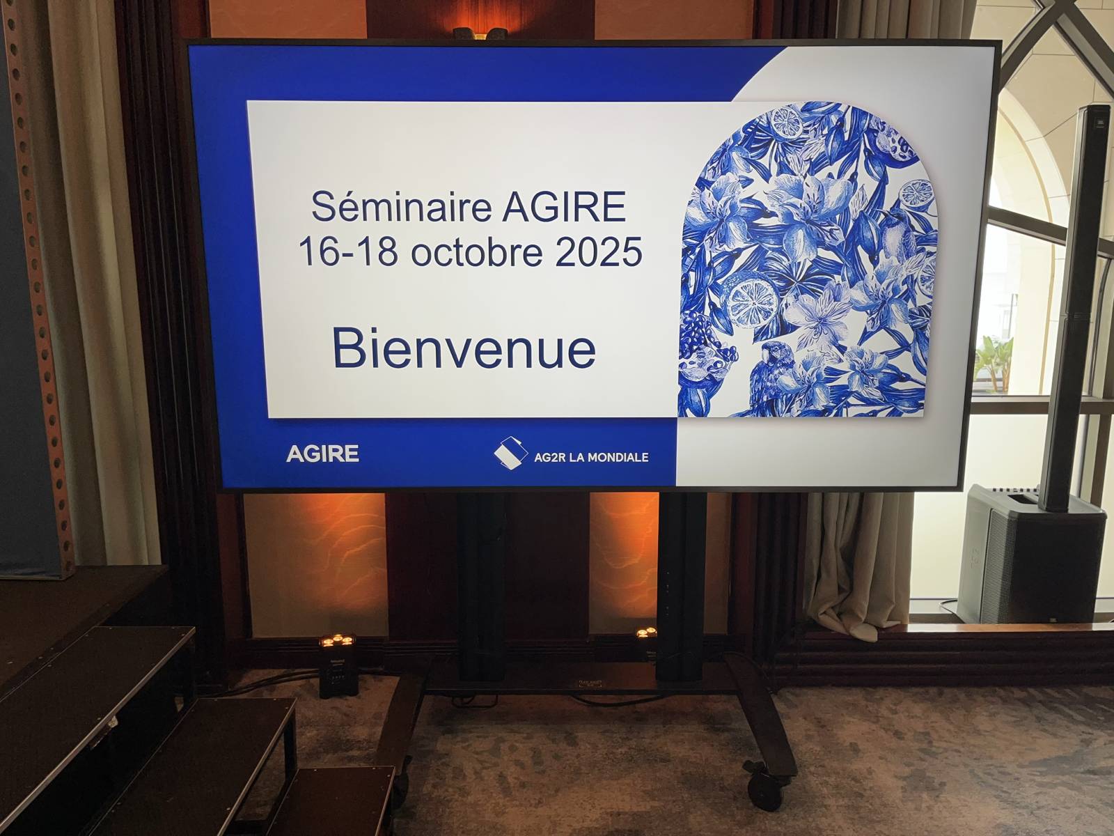 Régie video numérique, avec envoi de powerpoints et videos, pavloff, 3 écrans de retour avec timer, écran 98 pouces pour une vision optimale, streaming live zoom