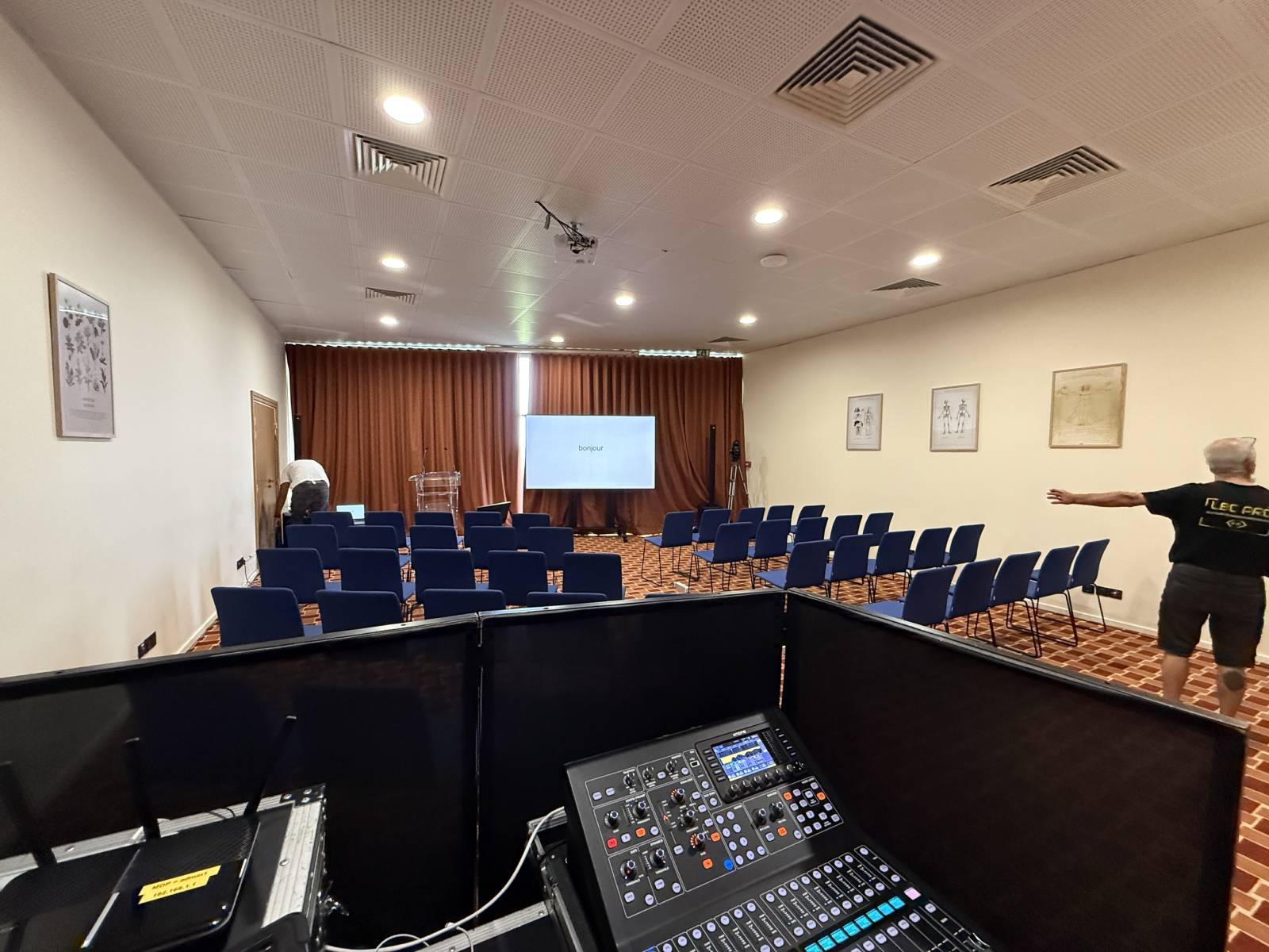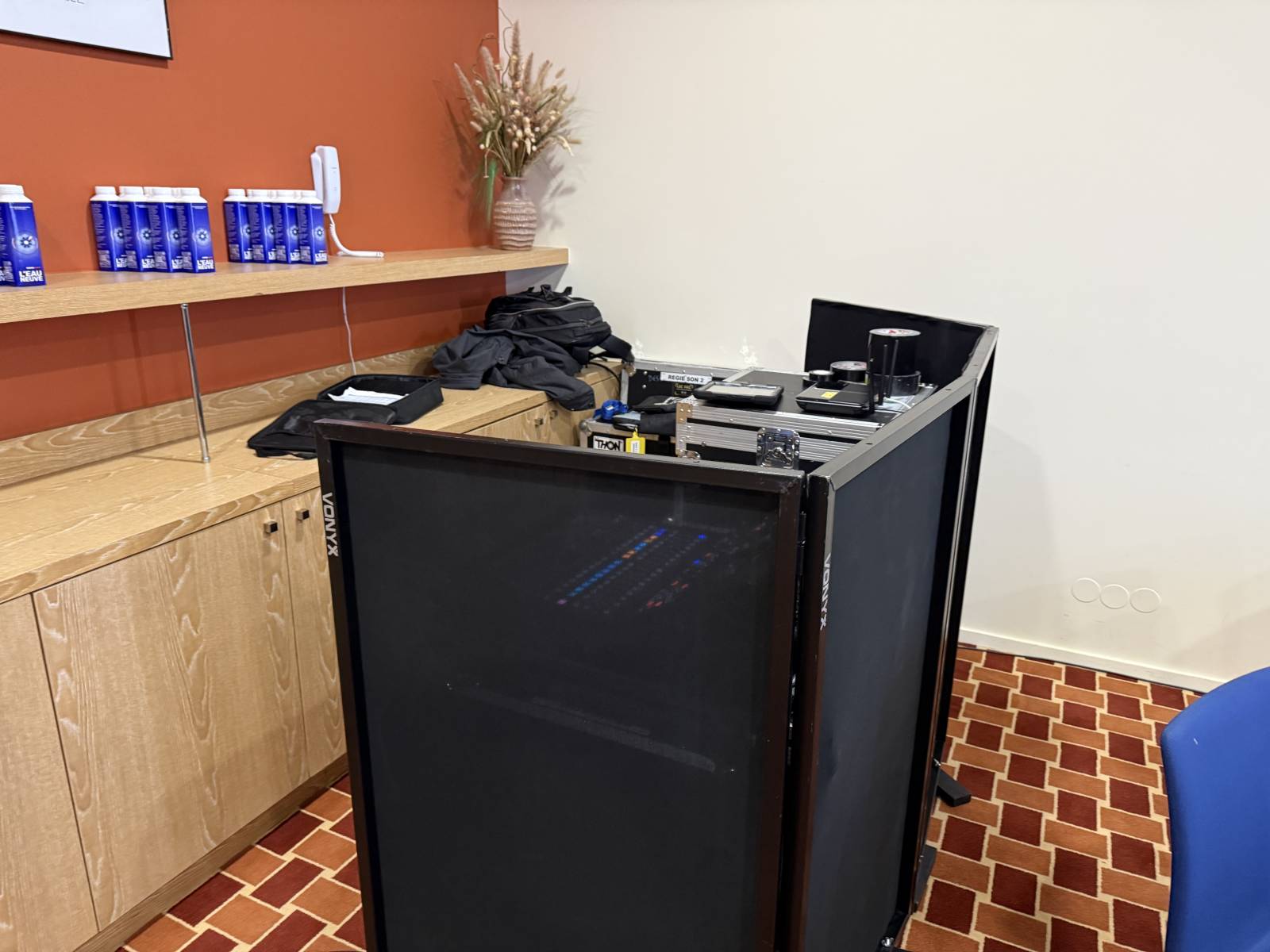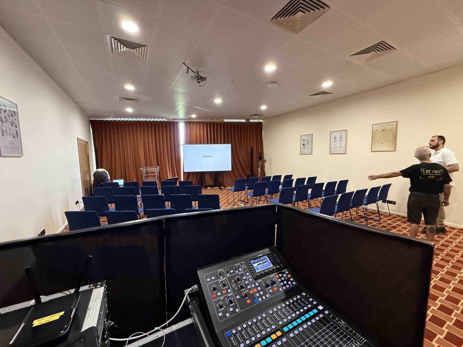 Enceintes de sonorisation jbl avec micro sennheiser et console de mixage midas