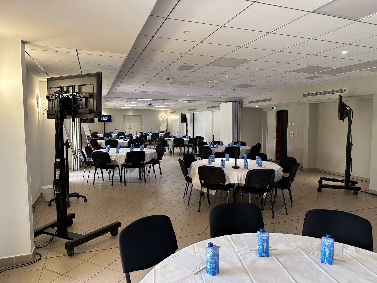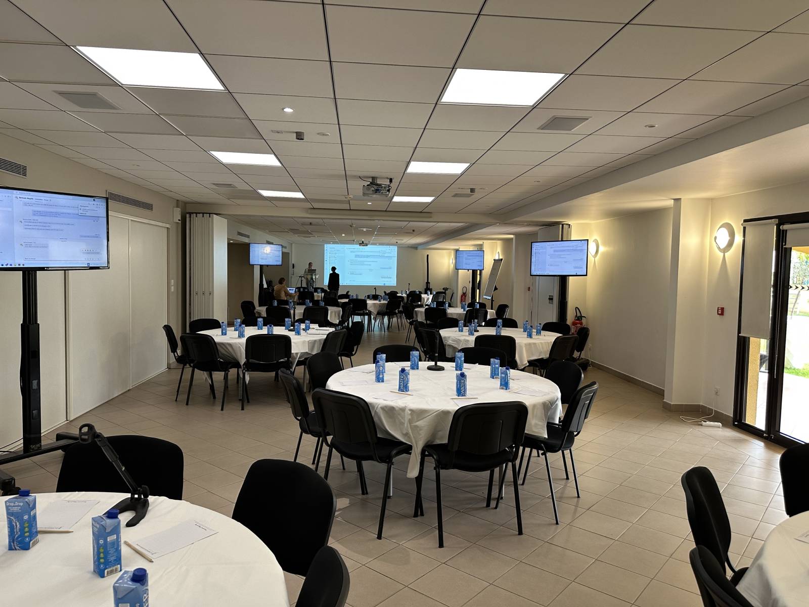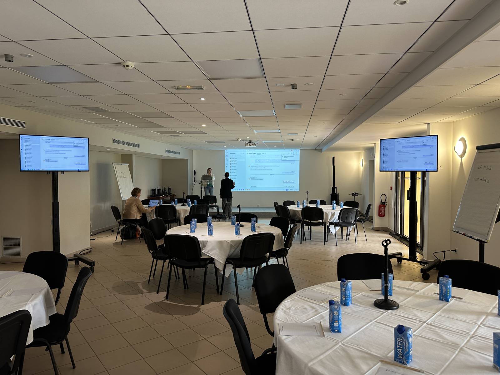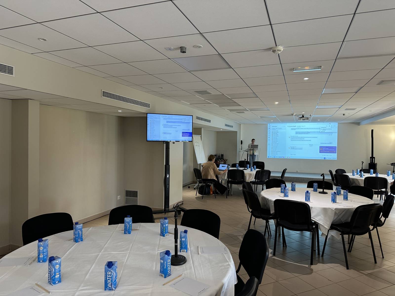 Mise en place d'une configuration pour un séminaire, à l'hôtel les jardins de Sainte maxime à sainte maxime,