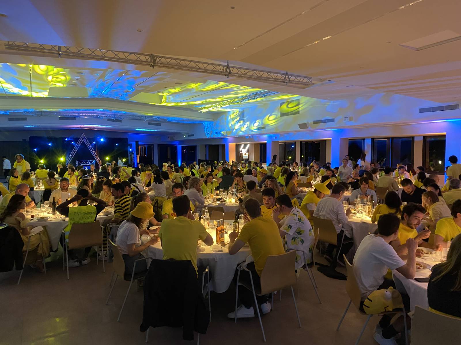 Après un apéritif sur l'esplanade st Marthe, et une partie de pétanque sous les lumières de LBC PRO EVENTS , la soirée de gala d'entreprise comme dans la salle st Marthe sur l'ile des Embiez à six fours les plages dans le var, le theme yellow party à été retenu pour cette belle soirée, nos lampes rechargeables sur les tables pour éclairer le diner, le dj aux commandes pour cette belle soirée, avec une sonorisation avec enceinte retour, diffusion caissons et têtes, console de mixage , micros, un kit lumière avec lyres leds, lyres 7R , machines a brouillard avec console lumière , rideau fond de scéne noir, les projecteurs sur batteries pour sublimer le lieu , notre équipe LBC PRO EVENTS à effectuer un travail de qualité, pur une pleine satisfaction de l'agence événementielle et du client final.