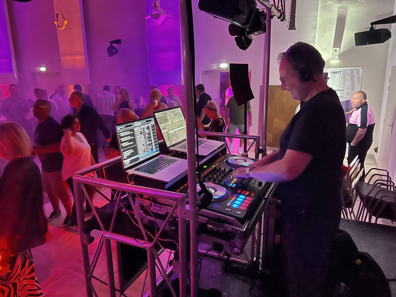 Notre animateur dj à animer la soirée avec ses platines Dj's avec la sonorisation dans la salle Pagnol sur l'ile des embiez à six fours dans le var.