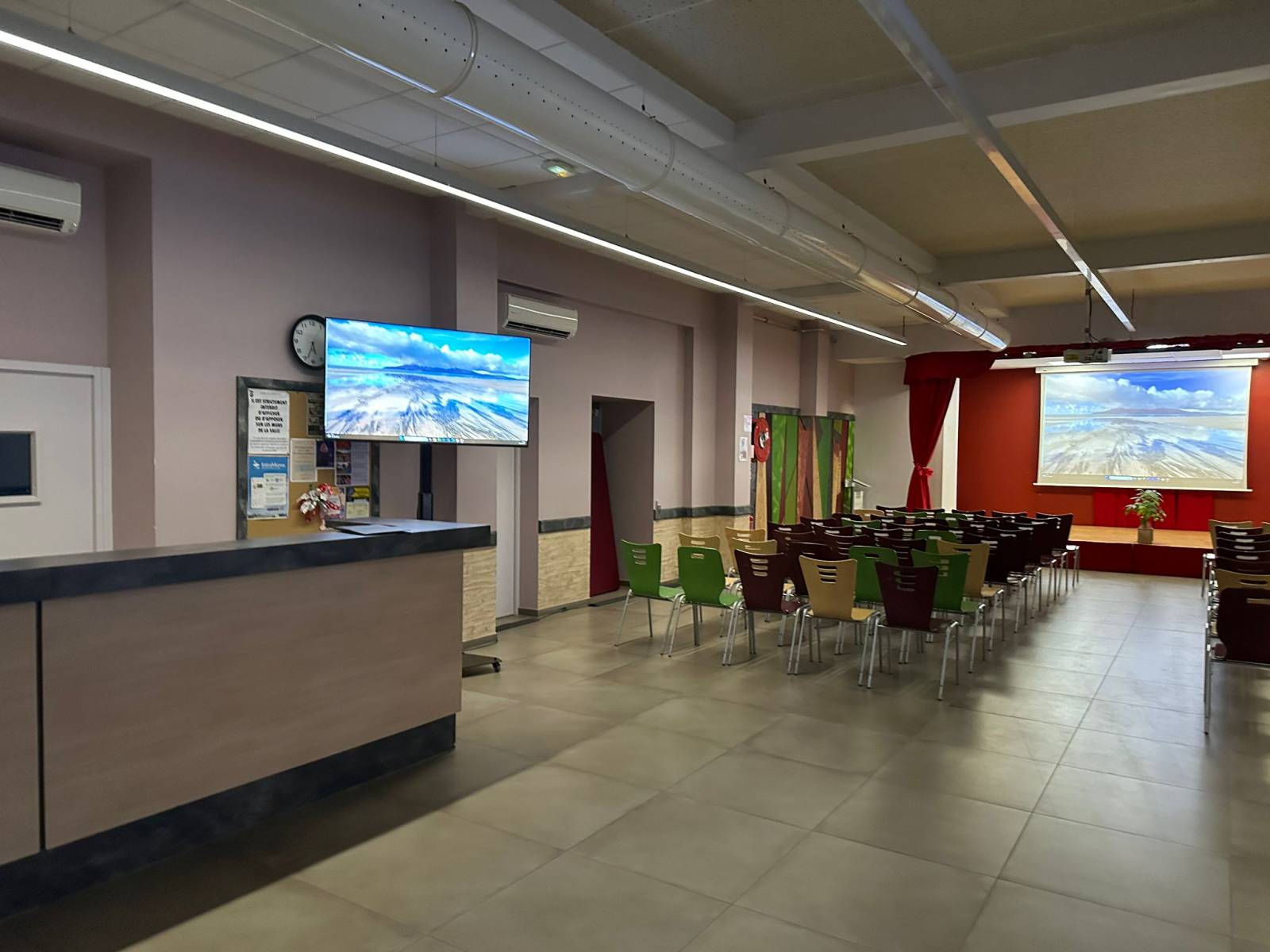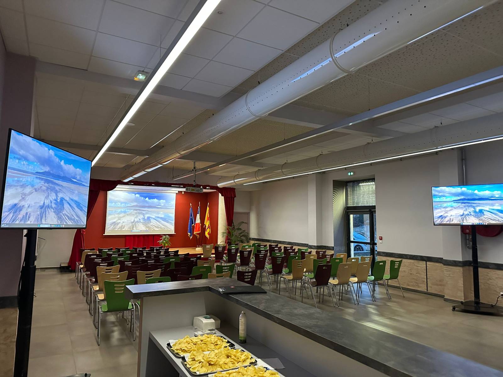 Le nombre de personne attendue est trop important et les personnes au fond de la salle de peuvent voir sur l'écran les éléments projetés