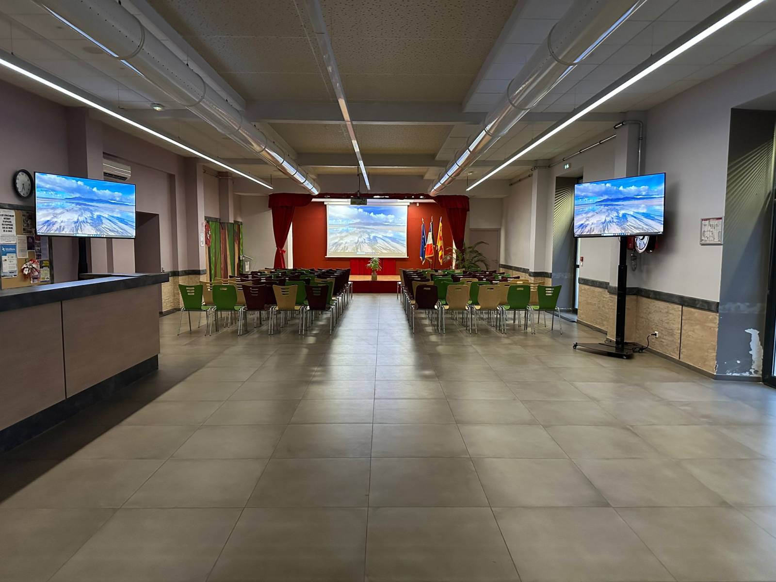 Nous avons connecté la source video sur 2 écrans supplémentaires sur pieds